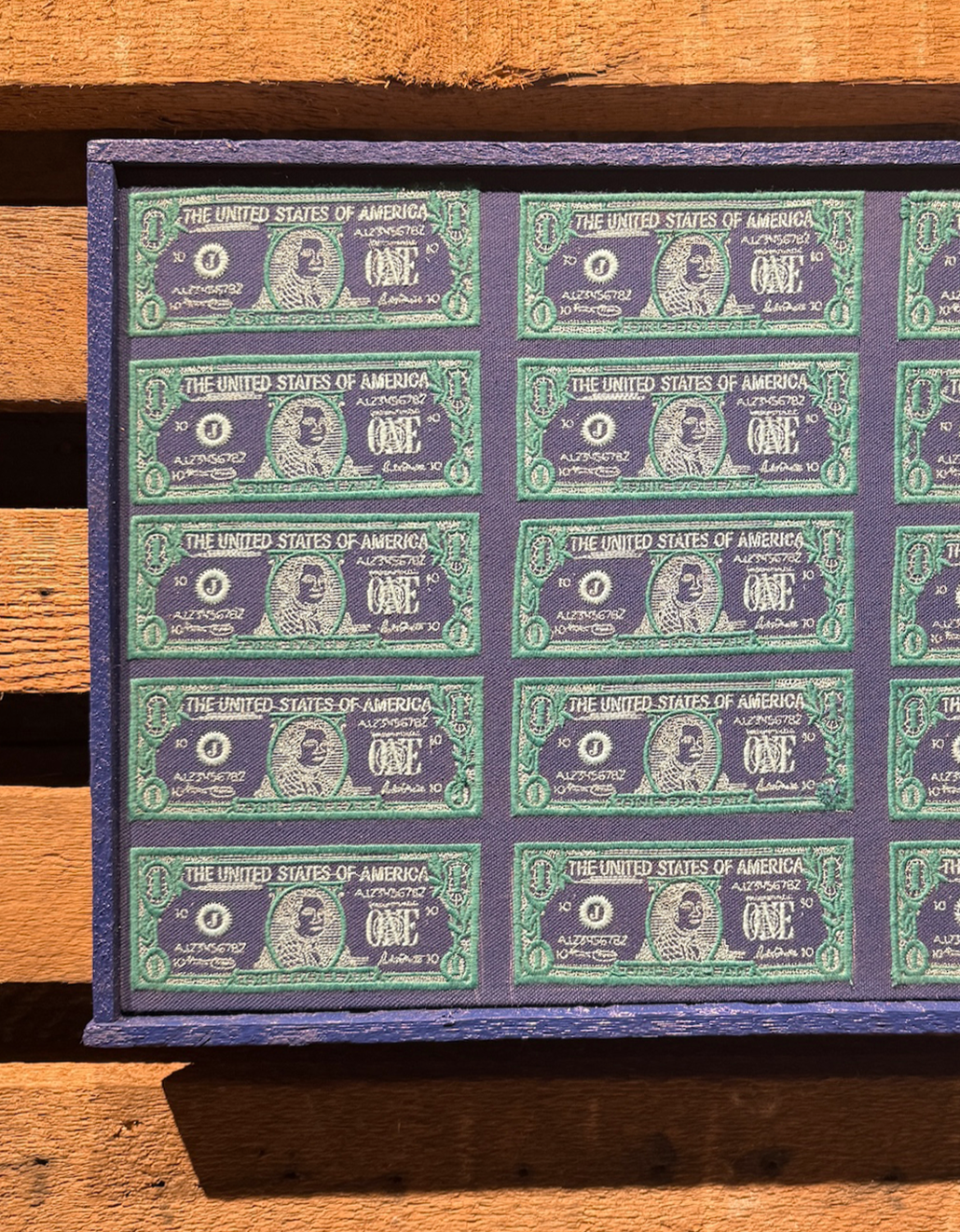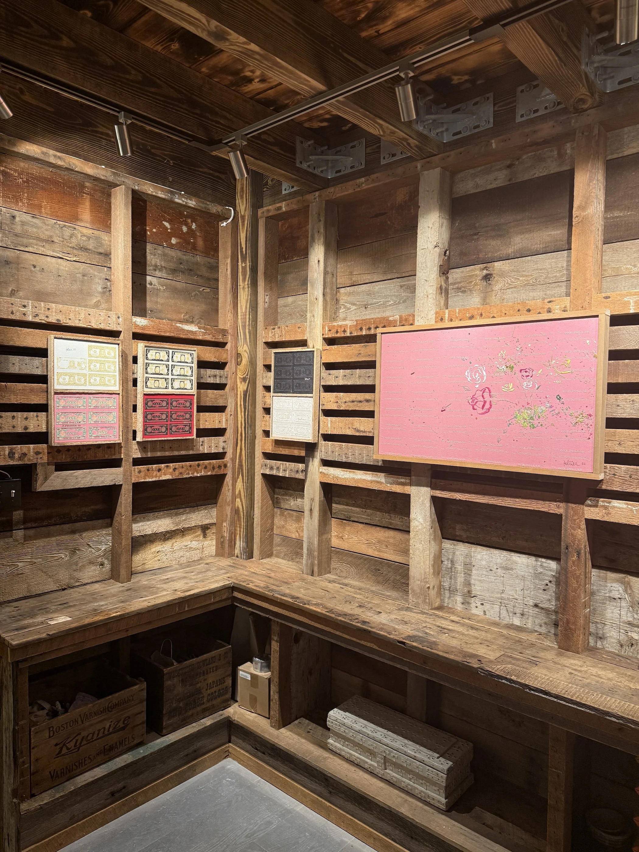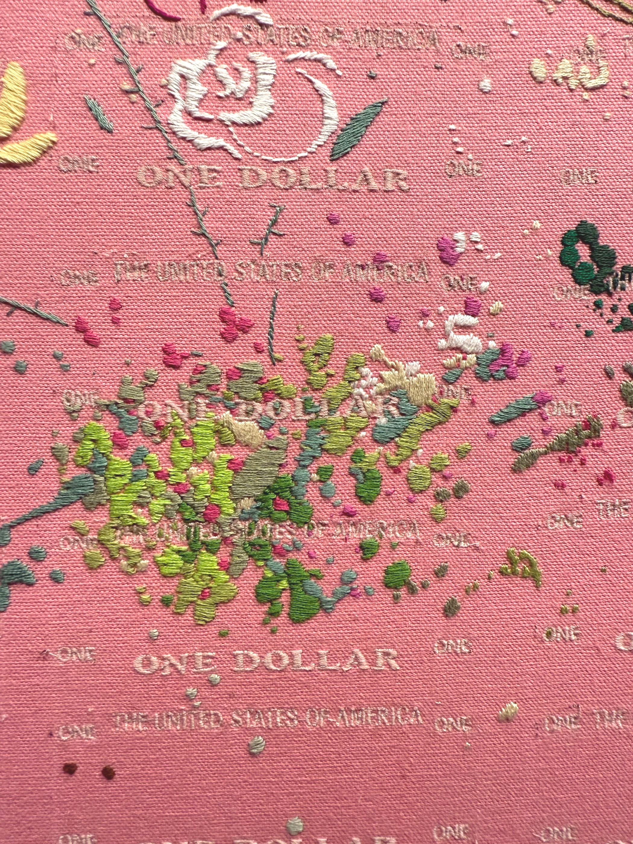 Patick Peltier has been upcycling clothing with hand embroidery under the moniker Bandulu for over a decade. His approach to fashion is inspired by the techniques of abstract expressionist artists' use of paint on a canvas but applied onto clothing using needle and thread. His gallery debut expands on this idea in the opposite way: canvases inspired by clothing. The work is referential to artists like Jackson Pollock and Franz Kline while at the same time being self-referential to his own medium. His multidisciplinary practice revolves around the ideas of waste, craft, consumerism and the unconscious while the death of the artisan and the rise of AI are themes explored through color, craft and pop culture references.